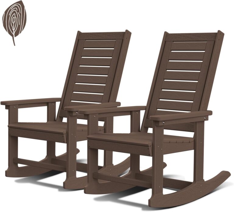 GREENVINES Outdoor Rocking Chairs | Set of 2 | Porch Rocker | HDPE Plastic | Wood Grain | Oversized Rockers | High Back | Big & Tall | Ladder Back | Dark Brown | for Patio Outside