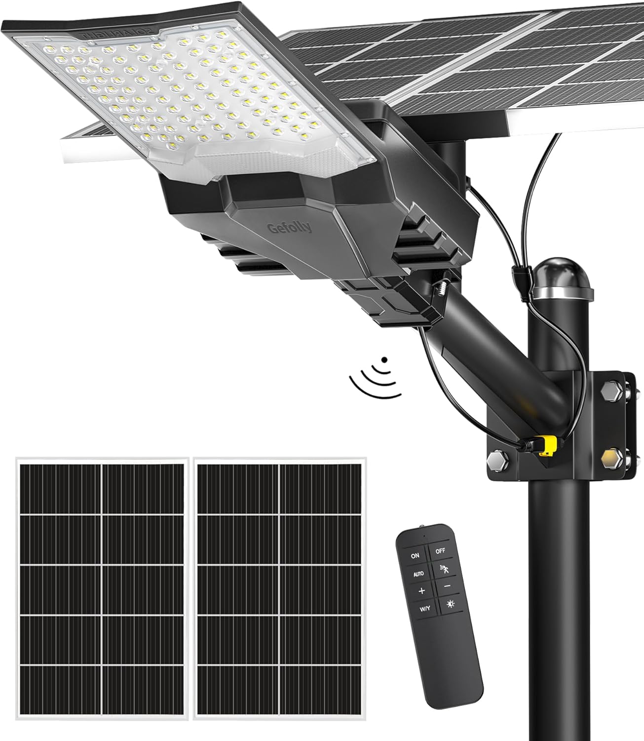 【Solar Powered & 0 Fees】 — Gefolly solar parking lot light is built-in 92pcs 5054 ultra bright LED lamp beads and 60000mAh battery (lifetime up to 65,000 hours). Provides a 6500K, IP67 waterproof rating, and works normally even in bad weather all year round. Solar powered, no electricity bill, auto turns on at dusk and charging during the day, Continuous lighting up to 30 hours (when fully charged). Best for commercial and home lighting.