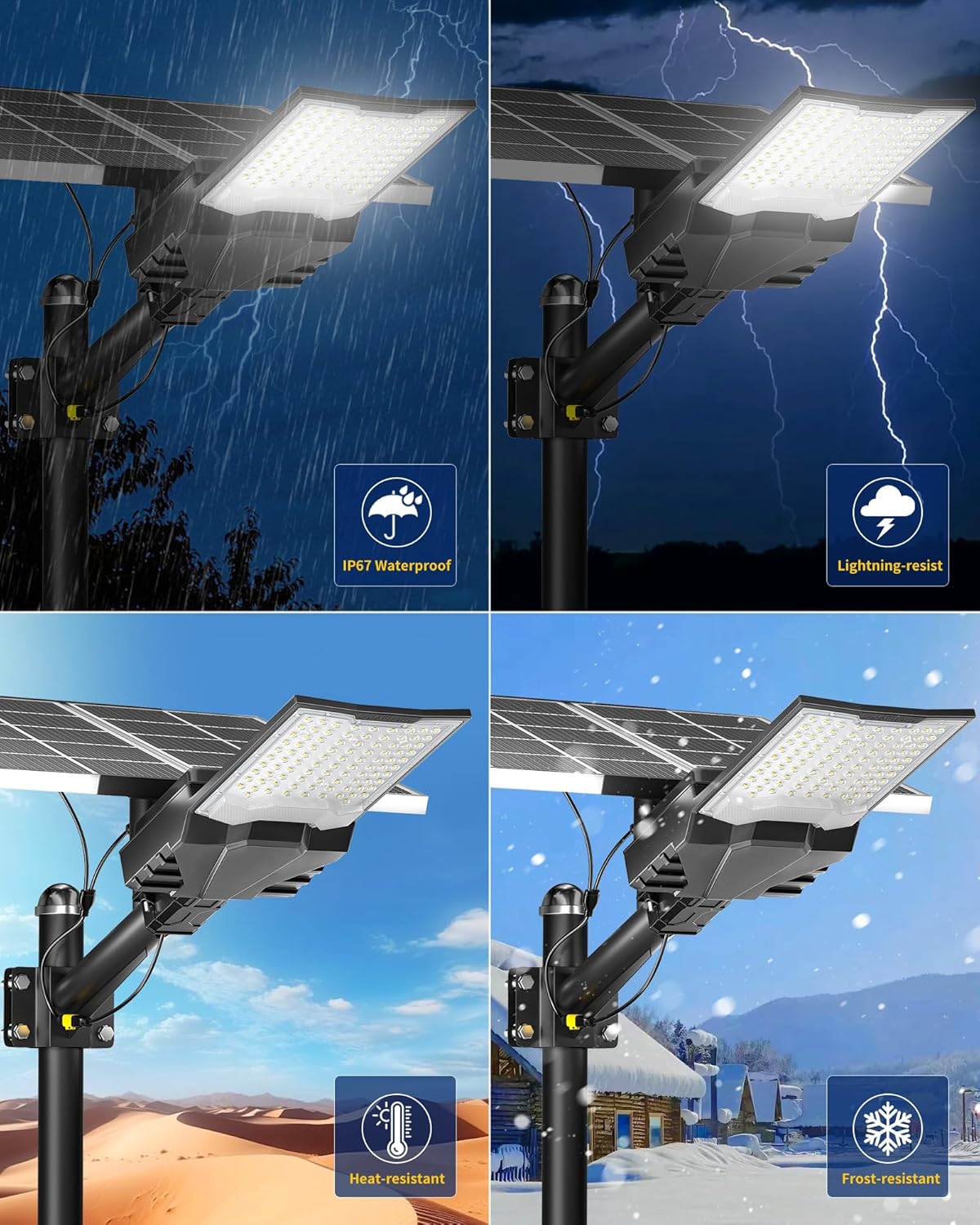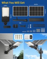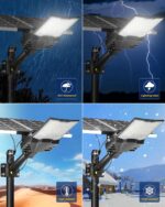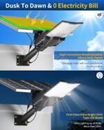 【60AH Large Capacity Battery】The solar street light has a built-in 60000mAh lithium battery, which is more stable and durable. Equipped with 2 solar panels, compared with ordinary solar lights, our lights can absorb twice the solar energy during the day, convert it into double electricity and store it, and output it in the form of light energy at night.