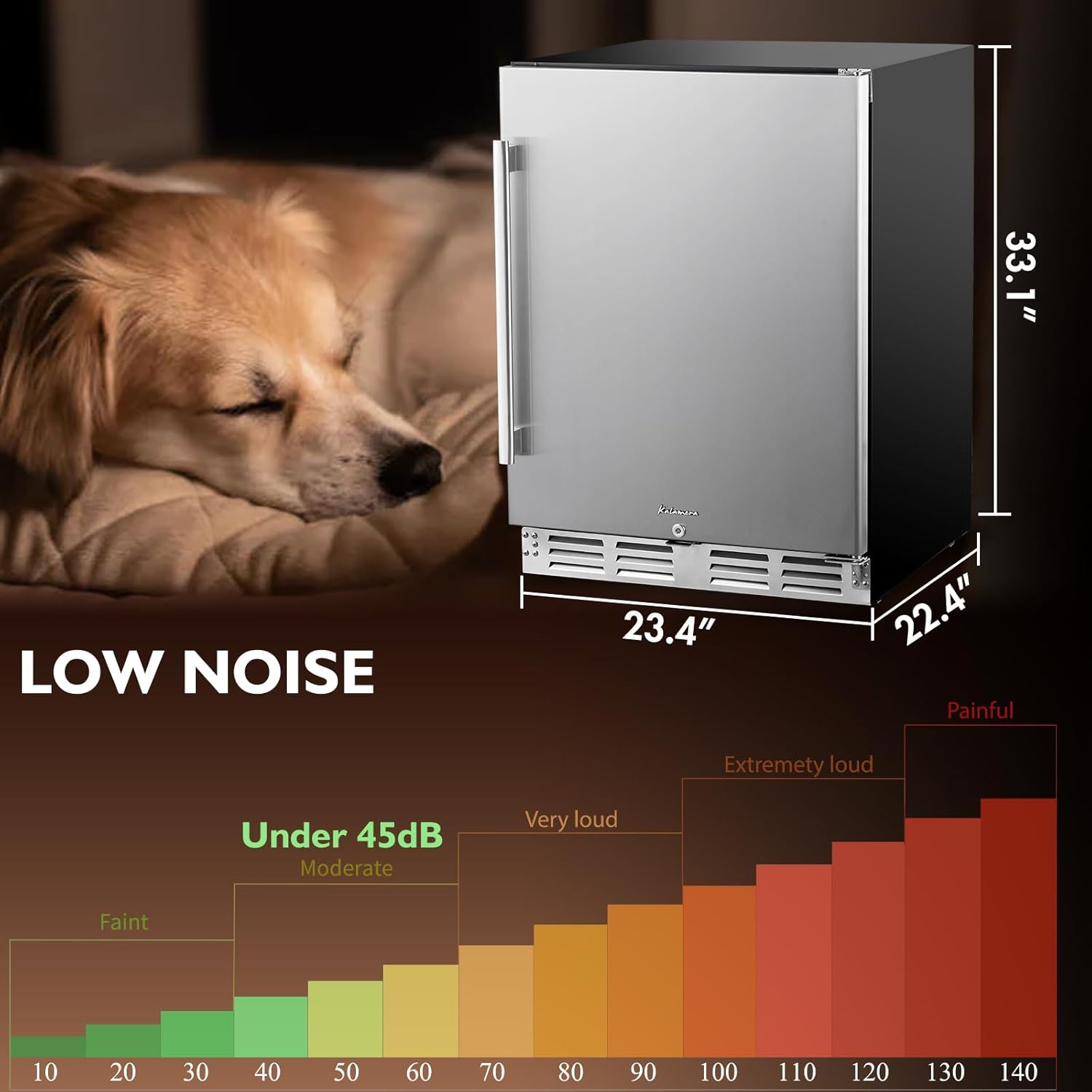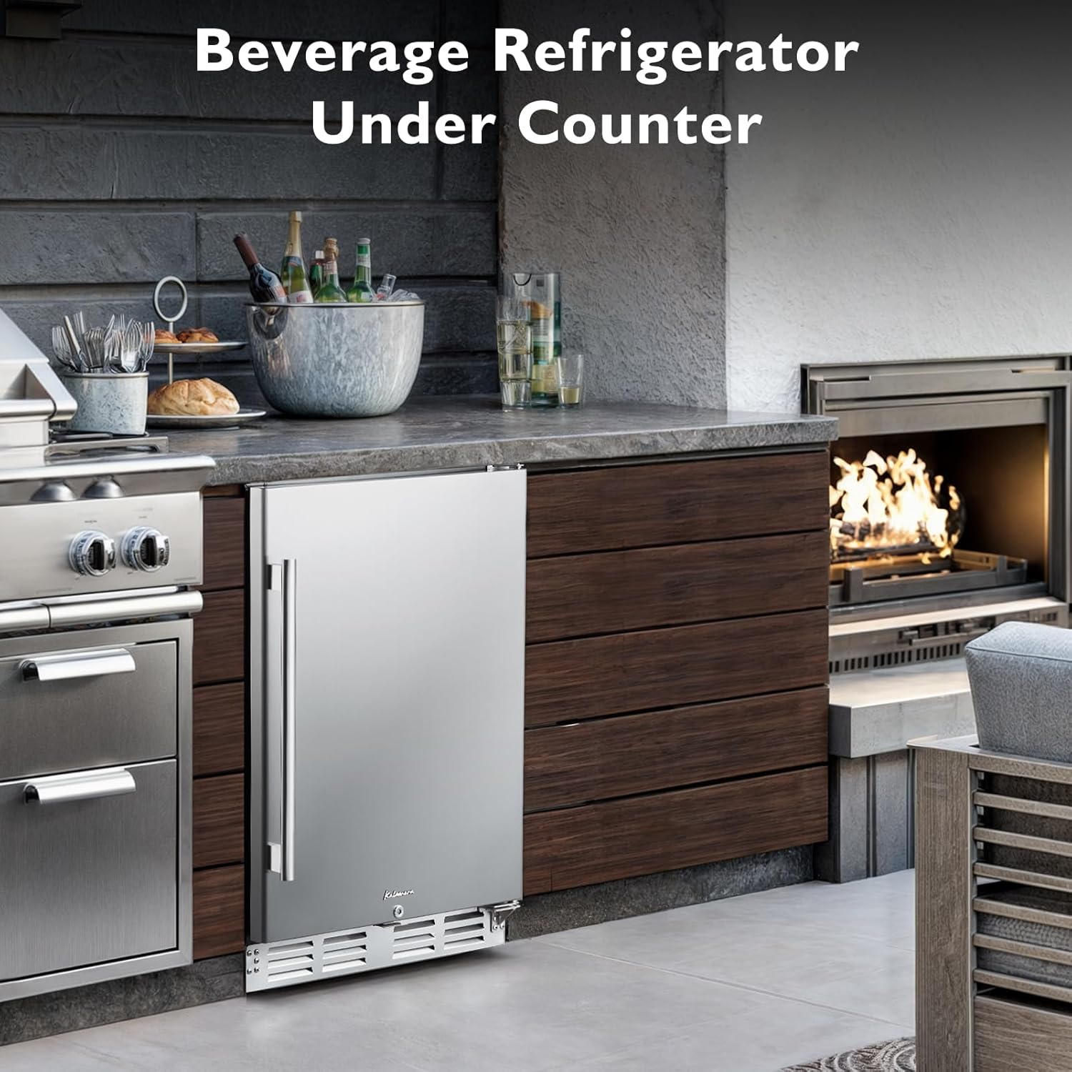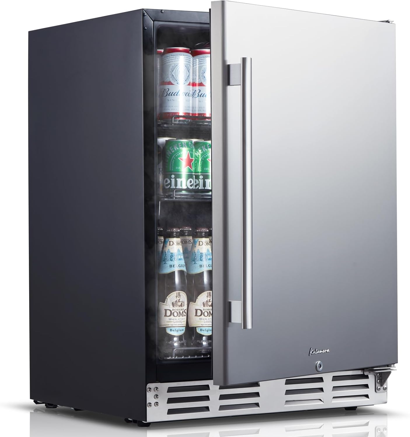 Kalamera 24 Inch Outdoor Beverage Fridge Under Counter Drink Cooler for 154 Cans 32-41℉ Temperature Range- Soda and Beer Refrigerator with Soild Stainless Steel Door