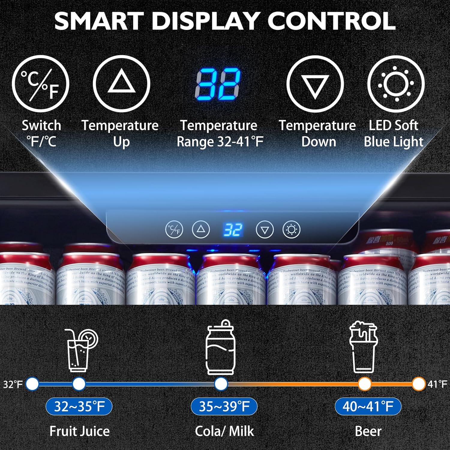 ☆BEVERAGE FRIDGE STORES UP TO 154 CANS – Chill your drinks to perfection in this beverage refrigerator! With 4 removable wire shelves, it holds different sizes of soda and beer cans vertically and horizontally. W 23.4 x H 33.1 x D 22.4 inches