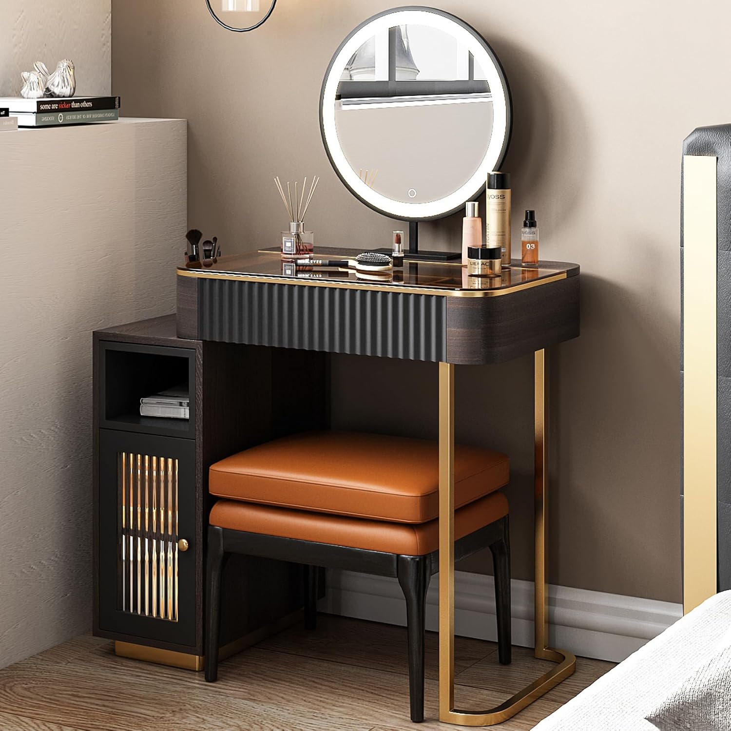 💖【Orderly and tidy】:Visible tempered glass countertop, with sensor light storage cabinets, no longer have to worry about finding items.