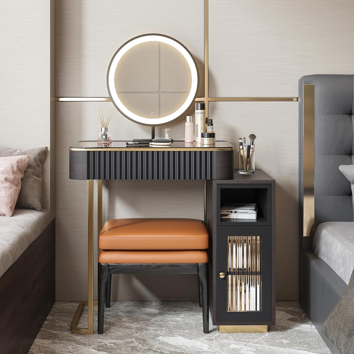 💖【Happy experience】:We know you’re worried about the hassle of installation, so we’ve completed the entire assembly of the dresser tabletop, and all you need to do is install the side cabinets and legs. The assembly process takes about 30 minutes to complete, this noble dressing table set will surely add elegance to your room.